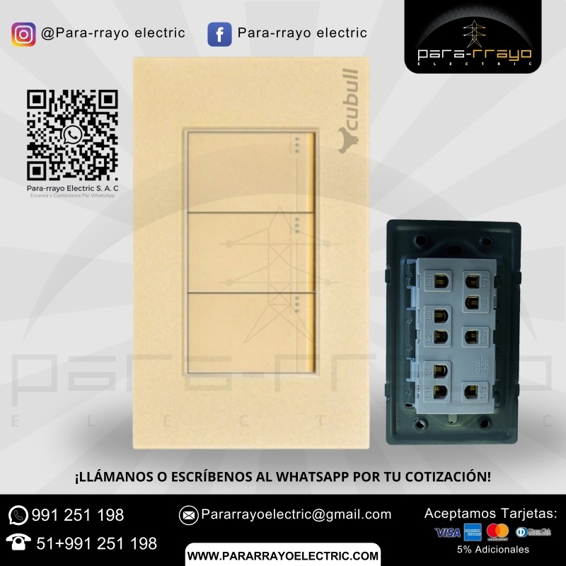 El Conmutador Triple B5-010 de la serie CUBULL es una solución eficiente para el control de la iluminación, brindando funcionalidad, comodidad y un diseño moderno que se adapta a las necesidades de cualquier espacio.