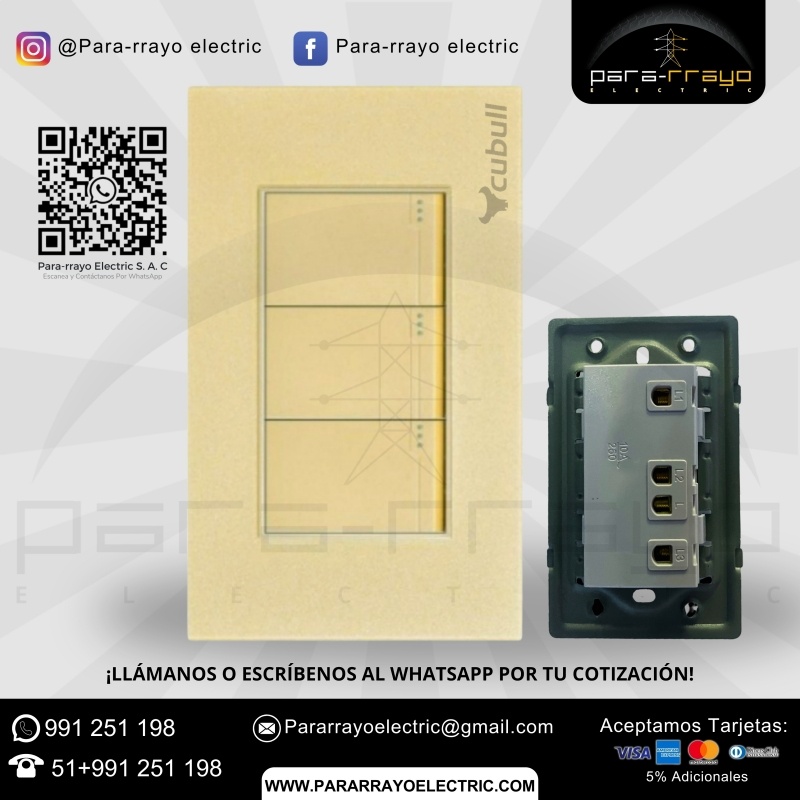 El Interruptor Triple B5-009 de la serie CUBULL es una solución práctica y funcional para el control de la iluminación, brindando comodidad, eficacia y un diseño moderno que se adapta a las necesidades de cualquier espacio.