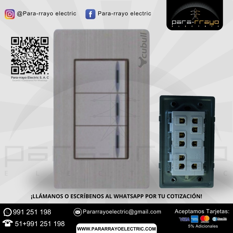 El Conmutador Triple A5-010 de la serie CUBULL está diseñado para proporcionar control desde tres ubicaciones distintas, ideal para entornos donde se requiere una solución versátil para la iluminación. Este conmutador destaca por su funcionalidad y diseño moderno, siendo perfecto para hogares y oficinas que buscan mayor control en la gestión de la luz.