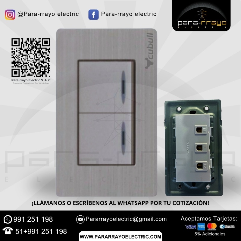 El Interruptor Doble A5-007 de la serie CUBULL es la solución perfecta para controlar de manera independiente dos circuitos de iluminación en una misma habitación. Su diseño compacto y moderno lo convierte en una excelente opción tanto para instalaciones residenciales como comerciales, ofreciendo facilidad de uso y un acabado elegante.