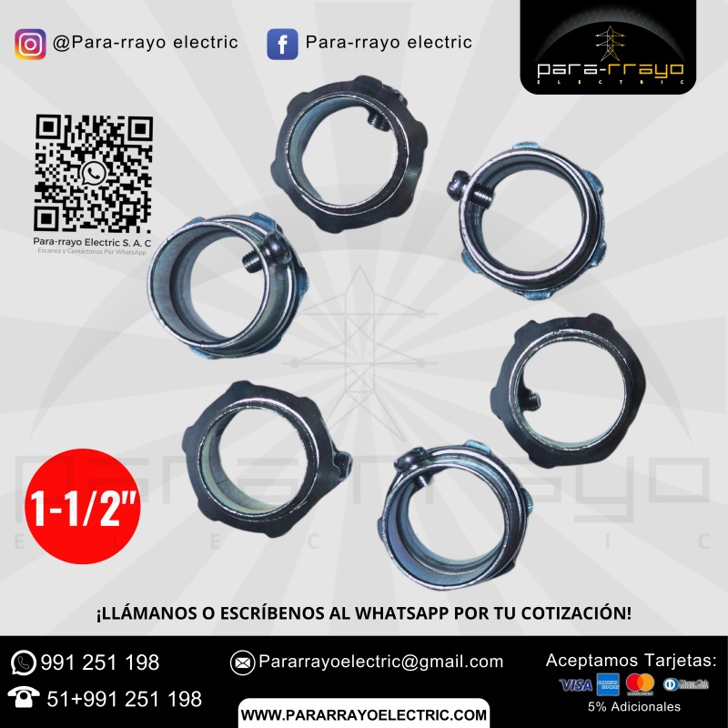 Uso: El conector conduit EMT 1-1/2" está diseñado para unir de forma segura y confiable conductos de tipo EMT (Electrical Metallic Tubing) de 1-1/2" en instalaciones eléctricas. Permite realizar conexiones estables entre secciones de tubo EMT, asegurando una instalación continua y eficiente de los cables eléctricos.