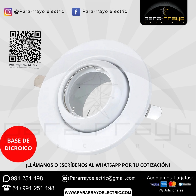 La base para dicroico tipo "Ojo de Buey" es un accesorio diseñado para instalar focos dicroicos GU10 o MR16, ofreciendo un acabado estético y funcional en proyectos de iluminación. Este producto es ideal para aplicaciones en interiores, aportando un diseño moderno y elegante a cualquier espacio.