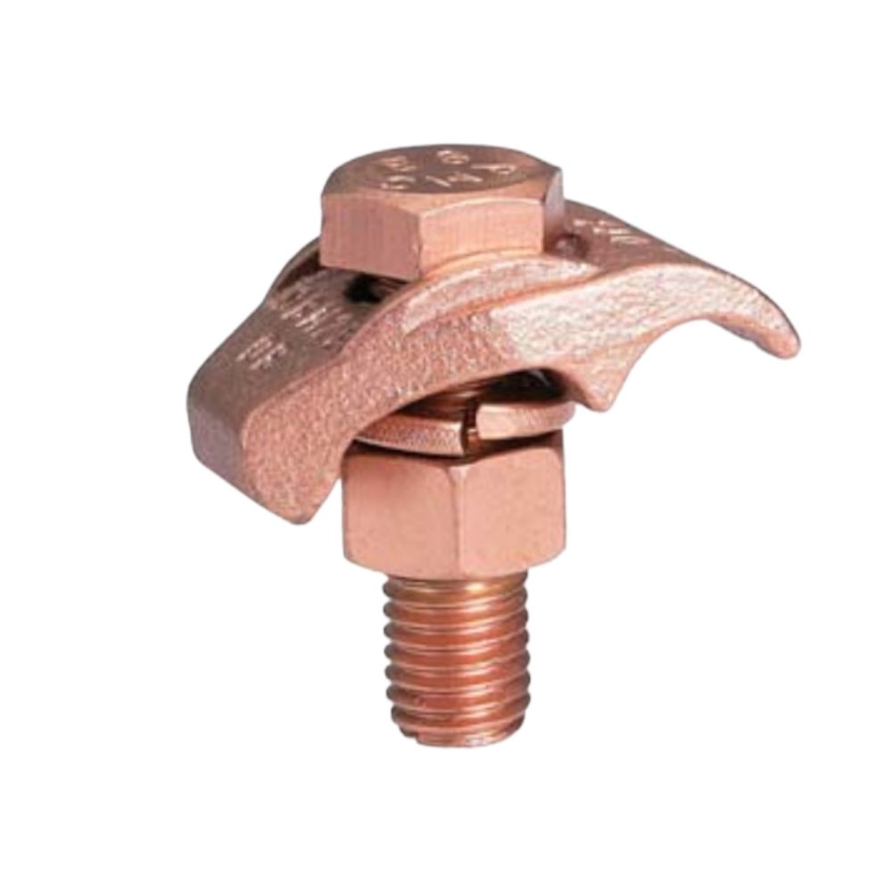 Características: Conector a tierra de aleación de cobre alto para unir una amplia gama de dos cables paralelos a una barra de . de espesor, el tipo GC separa el cable de la barra, GCM sujeta el cable a la superficie de la barra, instalación con una llave, listado UL467, el cuerpo fundido de aleación de cobre alto y los pernos, tuercas y arandelas de seguridad DURIUM hacen que el GC y el GCM sean aptos para entierro directo en concreto o suelo. a