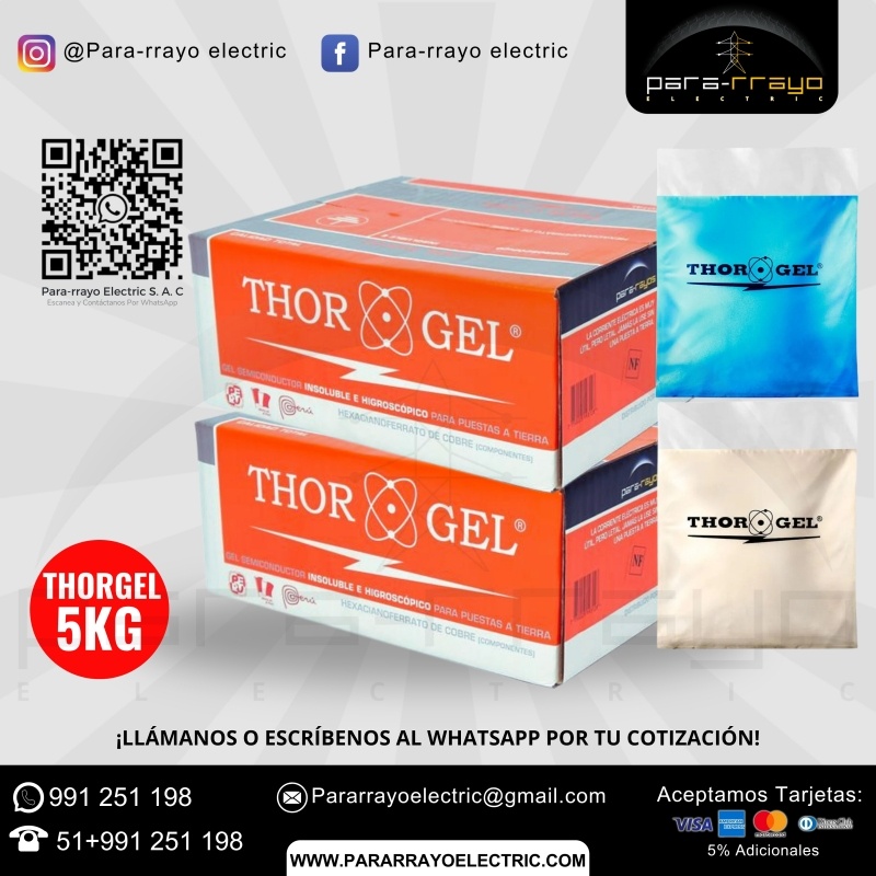 El Thor Gel es un compuesto altamente eficiente diseñado específicamente para la mejora de sistemas de puesta a tierra y protección contra descargas atmosféricas. Este producto viene en una presentación de 5 kg y está formulado con materiales conductivos de alta calidad, que al ser mezclados con agua, forman un gel de baja resistencia eléctrica. Su uso es ideal en suelos de baja conductividad, proporcionando una solución duradera y confiable para garantizar una óptima disipación de la corriente.