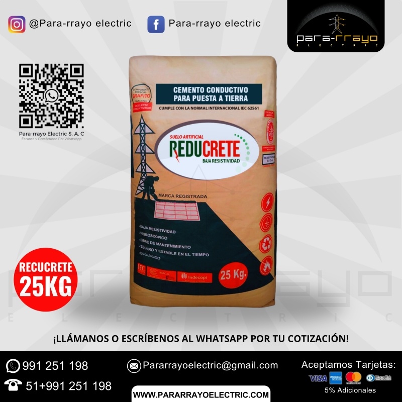 El Cemento Conductivo Reducrete 25kg es una solución confiable y eficiente para mejorar la conductividad y protección de los sistemas de puesta a tierra, garantizando una instalación segura y de alta calidad en diversos entornos.