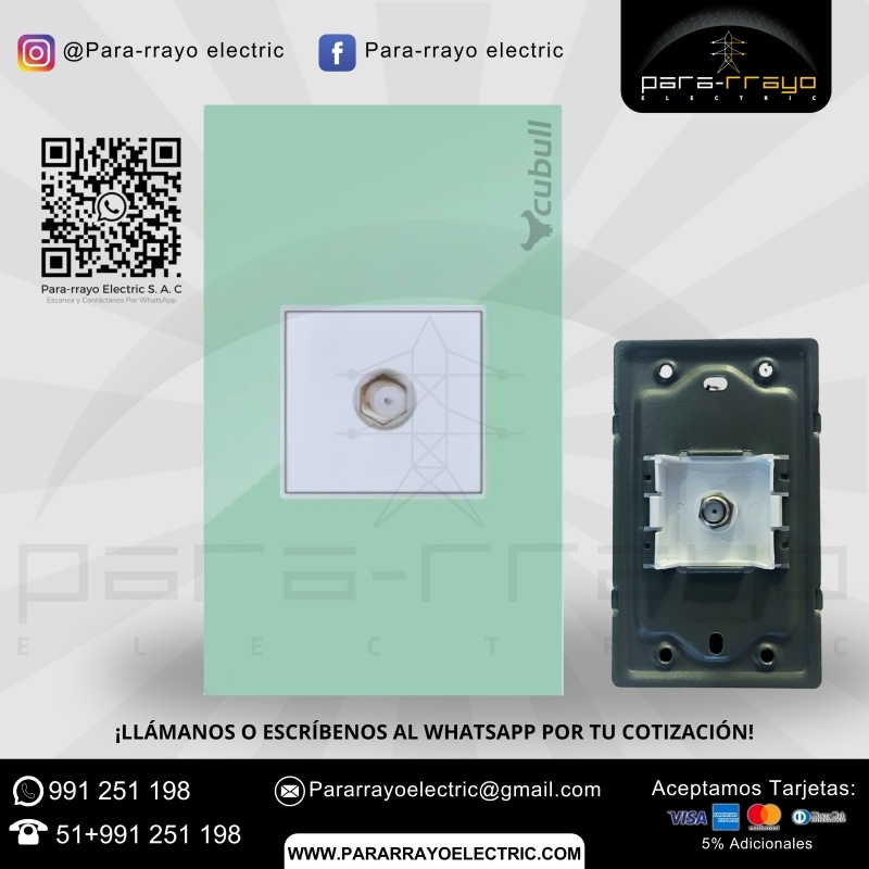 El toma TV B1-033 de la serie CUBULL es ideal para asegurar una conexión eficiente y de alta calidad a la red de televisión, proporcionando una transmisión confiable y un diseño moderno para cualquier tipo de instalación eléctrica.