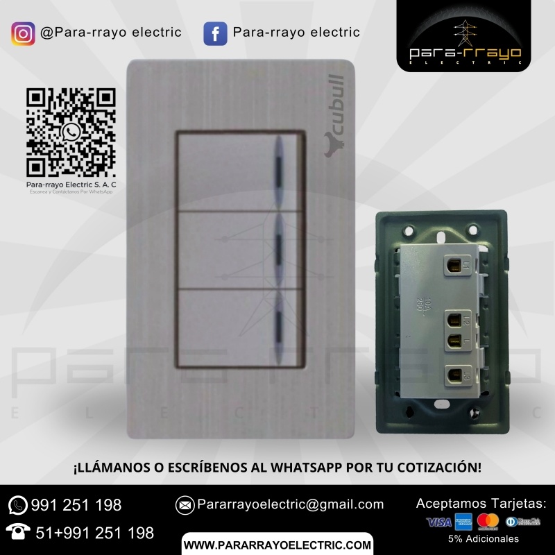 Este interruptor triple es una solución ideal para tus clientes que necesitan gestionar varias fuentes de luz de manera eficiente.