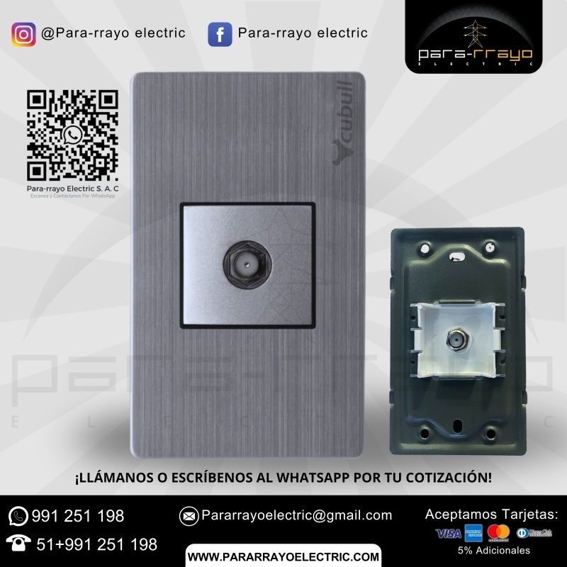 El Toma TV A5-033 de la serie CUBULL es un dispositivo diseñado para ofrecer una conexión de señal de televisión de alta calidad. Ideal para instalaciones en hogares, oficinas y espacios comerciales, este toma de TV asegura una recepción clara y nítida, compatible con señales de televisión analógica y digital. Su diseño elegante permite que se integre perfectamente en cualquier ambiente.