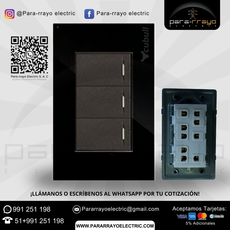 El Conmutador Triple B2-010 de Cubull es un dispositivo diseñado para controlar tres circuitos de manera independiente desde una misma ubicación. Este tipo de conmutador es ideal para controlar la iluminación o dispositivos eléctricos en diferentes áreas o puntos de una habitación, lo que lo hace útil en espacios como grandes salas, pasillos o zonas comerciales.