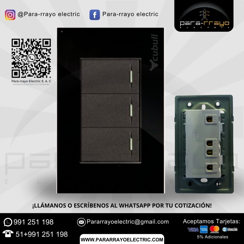 - Tipo: Interruptor triple (tres interruptores en una unidad)