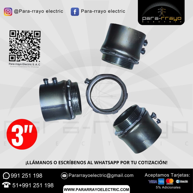 Uso: El conector conduit EMT 3" es una pieza indispensable para realizar conexiones seguras y resistentes entre tramos de conductos de EMT (Electrical Metallic Tubing) de 3". Este conector asegura una unión sólida y confiable, protegiendo el cableado de posibles daños y asegurando el correcto funcionamiento del sistema eléctrico.