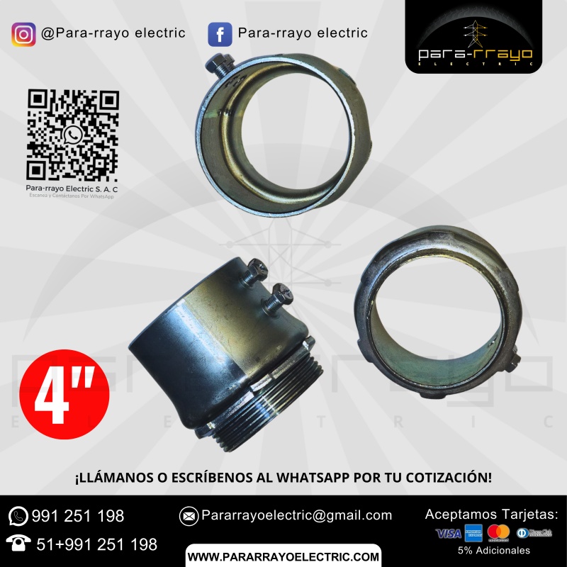 Uso: El conector conduit EMT 4" es un componente esencial para la conexión de tramos de conductos de EMT (Electrical Metallic Tubing) de 4". Proporciona una unión segura y confiable que protege el cableado eléctrico y asegura una instalación adecuada y segura.