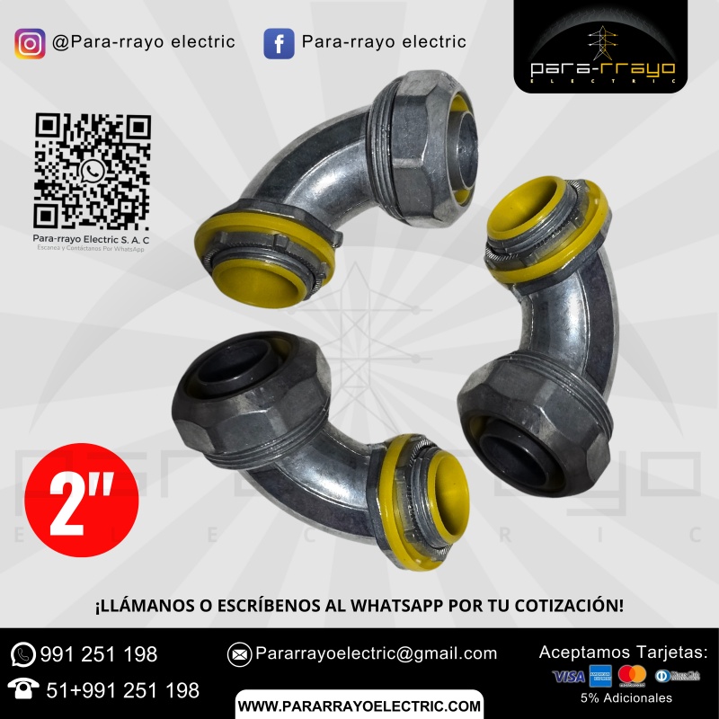 Uso: El conector hermético curvo Liquid Tight de 2" está diseñado para ofrecer una conexión segura y flexible en sistemas eléctricos. Su estructura curvada es ideal para direccionar conductos flexibles sin comprometer la integridad del sistema, garantizando una instalación efectiva y protegida contra los elementos externos.