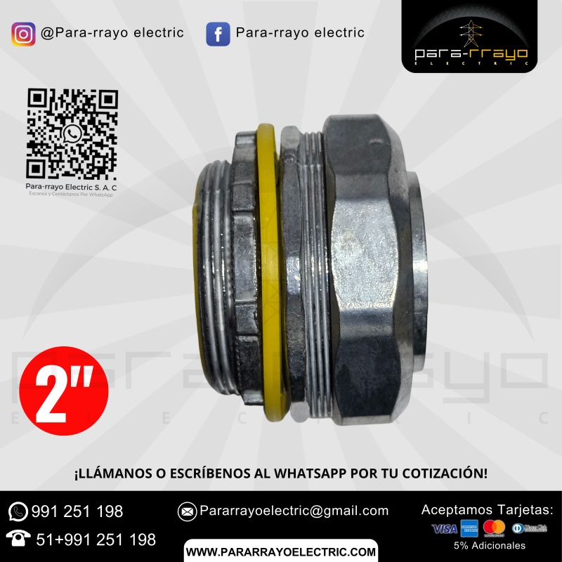 Uso: El Conector Recto Hermético Liquid Tight 2" está diseñado para conectar de manera segura y sellada conductos flexibles Liquid Tight de 2", ofreciendo una excelente protección contra la humedad, polvo y otros contaminantes, ideal para sistemas eléctricos expuestos a condiciones ambientales difíciles.