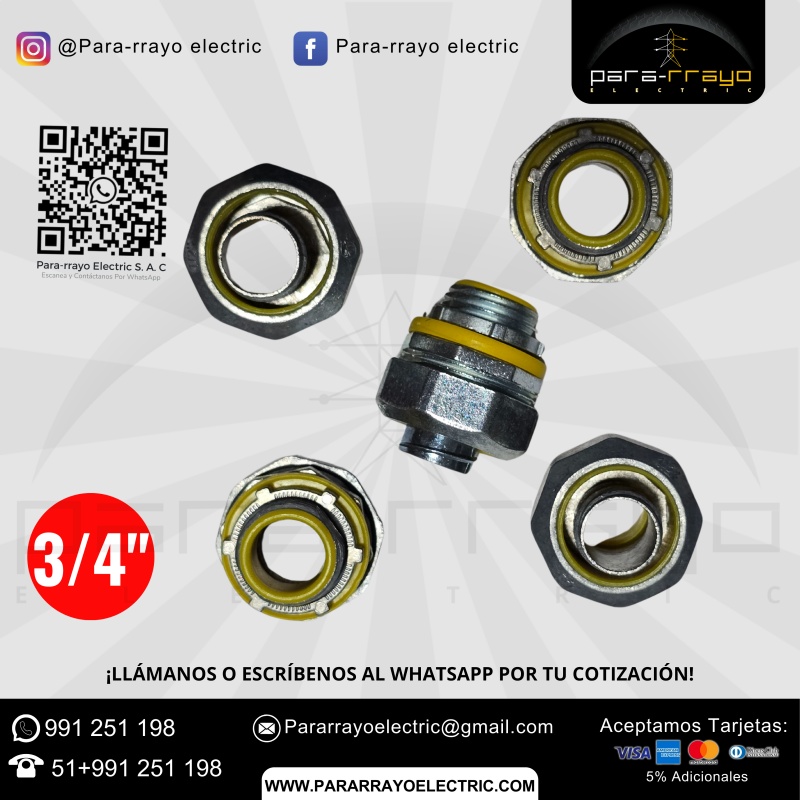Uso: El Conector Recto Hermético Liquid Tight 3/4" está diseñado para proporcionar una conexión segura y sellada entre conductos flexibles Liquid Tight de 3/4" de diámetro. Este conector es ideal para aplicaciones en entornos industriales y comerciales donde se requiere protección contra la humedad, polvo y otros contaminantes.
