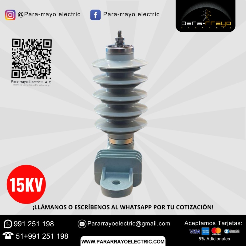 El pararrayos polimérico 15kV es un dispositivo de protección utilizado en sistemas eléctricos de media tensión, específicamente diseñado para proteger las instalaciones de las descargas atmosféricas y las sobretensiones transitorias provocadas por los rayos. Gracias a su construcción polimérica avanzada, este dispositivo ofrece una excelente protección para redes de transmisión y distribución eléctrica operando a 15 kV.